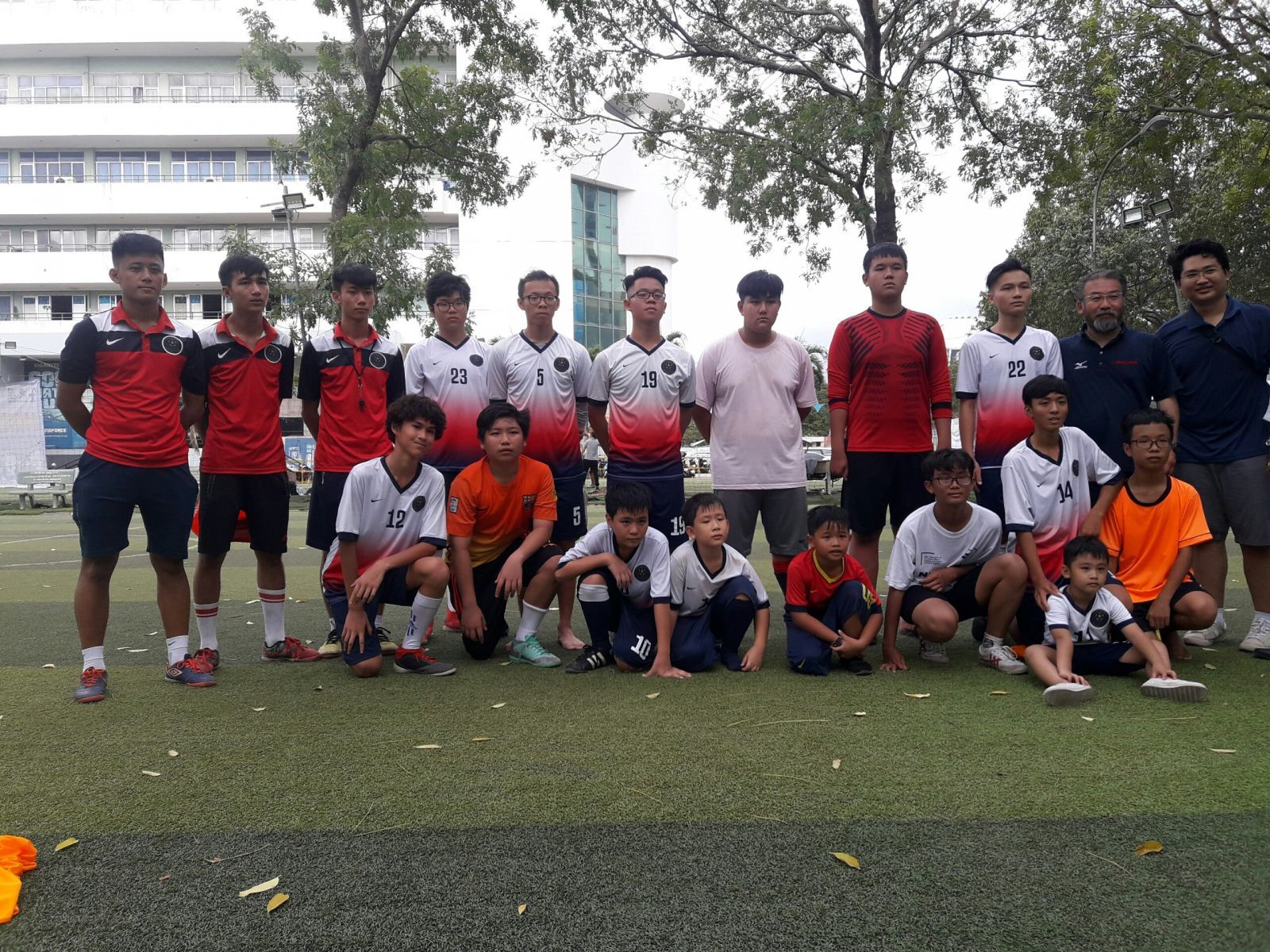 Ông Nagamoto chụp hình lưu niệm cùng các thầy và các cầu thủ nhí