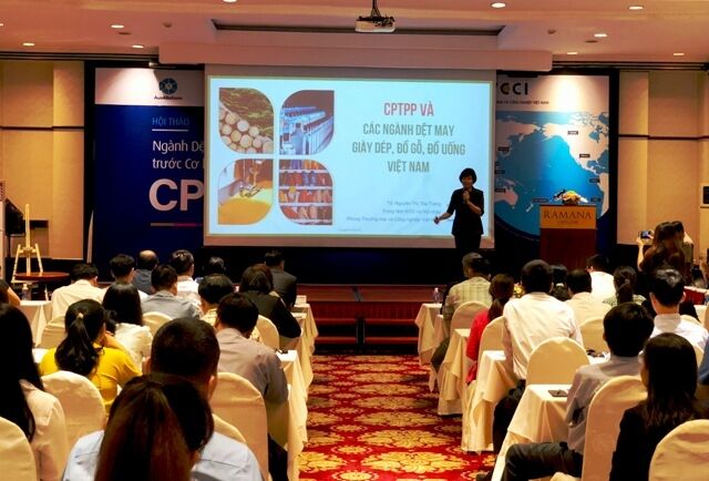 Tại Hội thảo Ngành dệt may - giày dép - đồ gỗ - đồ uống Việt Nam trước cơ hội và thách thức từ CPTPP do Phòng Thương mại và Công nghiệp Việt Nam (VCCI), Chương trình Australia hỗ trợ cải cách kinh tế Việt Nam (Aus4Reform) tổ chức sáng ngày 5/12, tại TP. Hồ Chí Minh, bà Nguyễn Thị Thu Trang – Giám đốc Trung tâm WTO và Hội nhập (VCCI) cho biết - CPTPP với những cam kết cắt giảm thuế quan, mở cửa thị trường của 11 nền kinh tế tham gia hiệp định là cơ hội rất lớn cho DN Việt Nam. Hiệp định đặc biệt quan trọng với các ngành dệt may, giày dép, đồ gỗ và đồ uống vì đây là những lĩnh vực có kim ngạch xuất khẩu hàng đầu của Việt Nam.