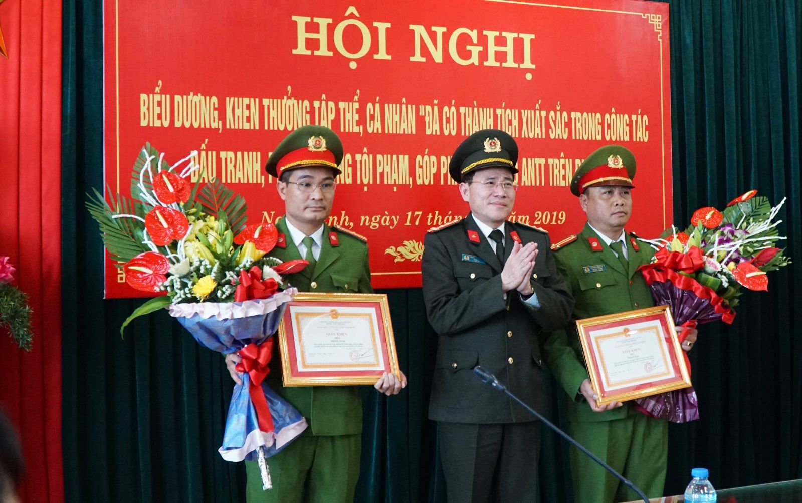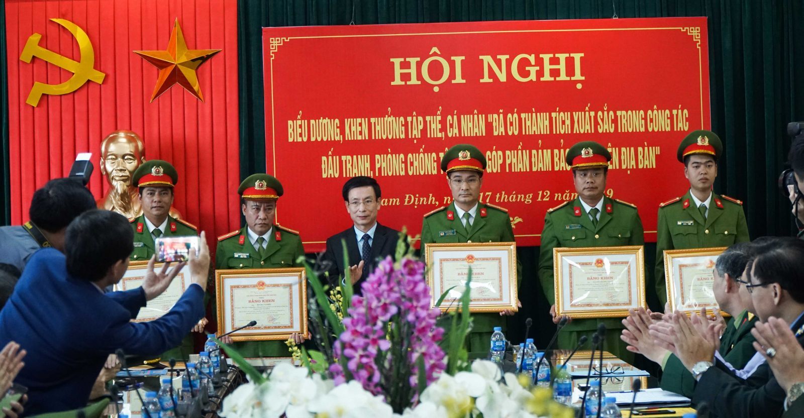 Để kịp thời động viên, khuyến khích cán bộ chiến sỹ thi đua lập chiến công, Giám đốc Công an tỉnh Nam Định đã tặng Giấy khen cho 2 tập thể, 6 cá nhân. Đồng thời, Chủ tịch UBND tỉnh Nam Định đã tặng bằng khen cho 1 tập thể, 5 cá nhân.