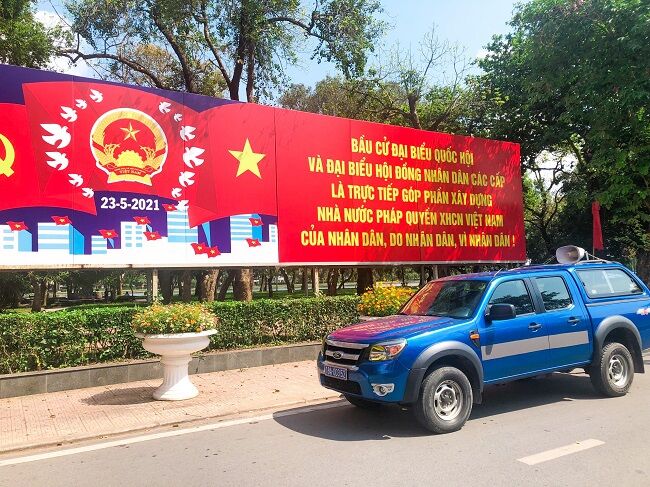 Các xe thông tin lưu động thực hiện công tác tuyên truyền cổ động trên các tuyến đường lớn thành phố Nam Định rồi đến từng ngõ phố nhằm cổ vũ người dân thể hiện trách nhiệm trước quyền lợi và nghĩa vụ của mình trong công tác bầu cử. Đồng thời, đẩy mạnh tuyên truyền nâng cao ý thức, trách nhiệm của người dân trong phòng, chống dịch Covid-19, nhất là thực hiện nghiêm thông điệp “5K” của Bộ Y tế về khử khuẩn, khoảng cách, khẩu trang, khai báo y tế và không tập trung đông người.