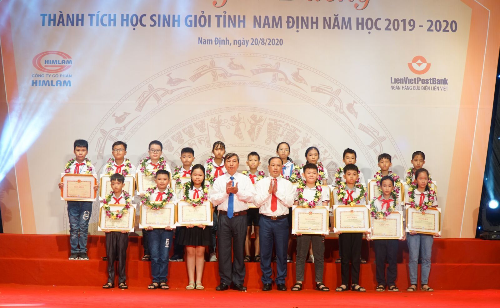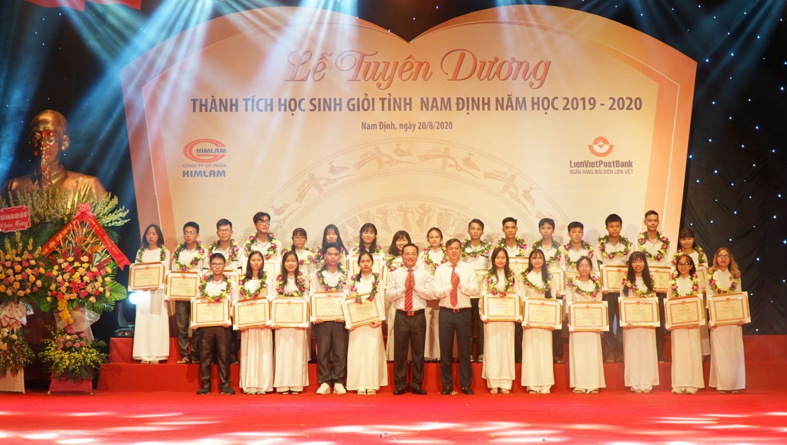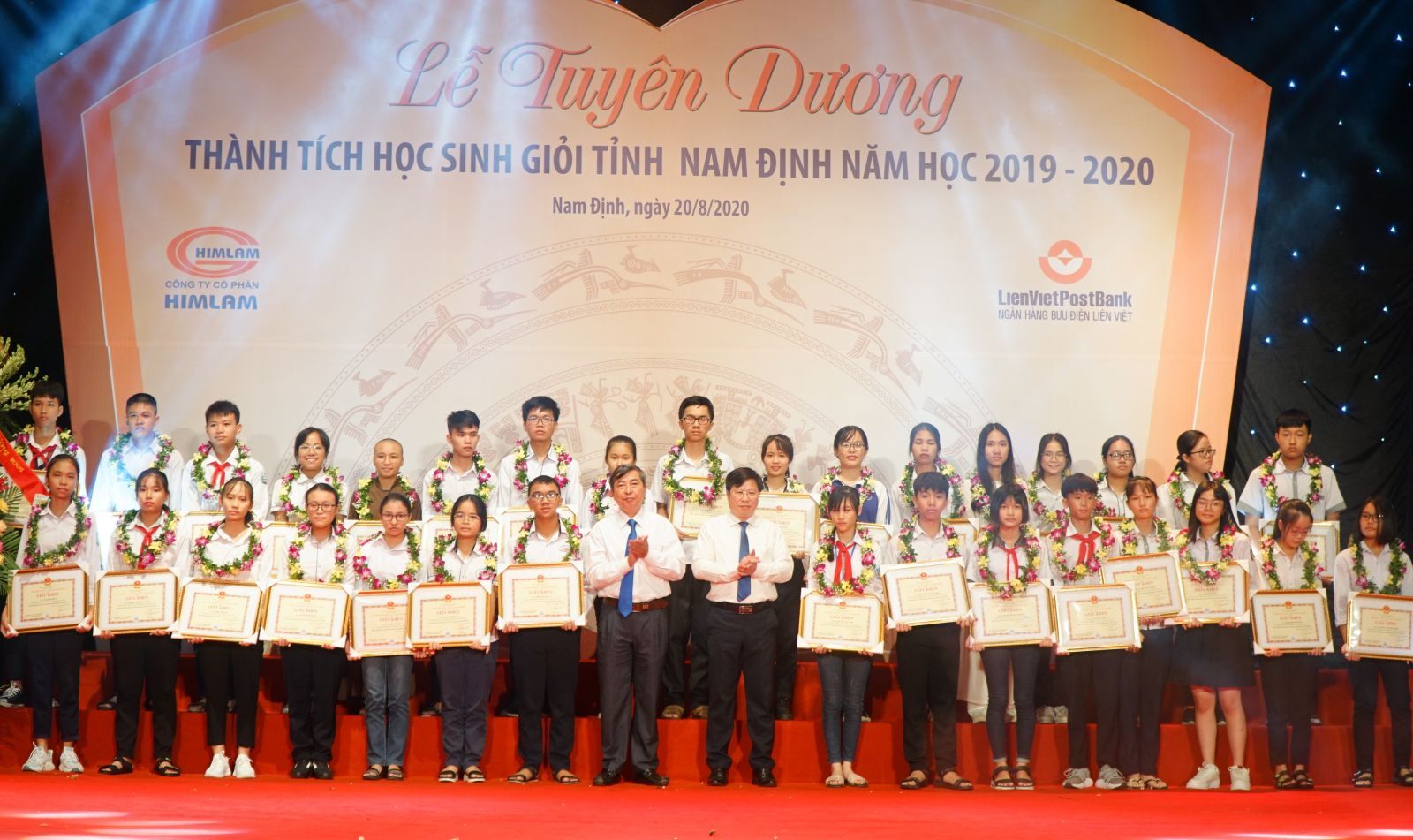 VNHN - Sáng 20/8, UBND tỉnh Nam Định tổ chức tuyên dương học sinh đạt thành tích cao trong năm học 2019 – 2020. 165 em học sinh đạt giải tại các kỳ thi học sinh giỏi quốc gia, quốc tế, học sinh giỏi tỉnh ở các cấp học tham dự buổi lễ.