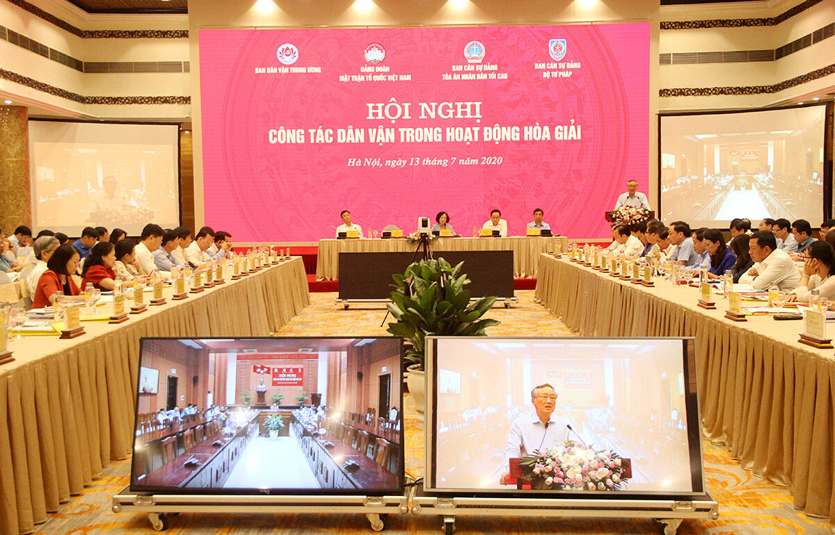 VNHN - Hôm nay (13/7), Ban Dân vận Trung ương phối hợp với TANDTC, Bộ Tư pháp và Ủy ban TW Mặt trận Tổ quốc Việt Nam tổ chức Hội nghị trực tuyến “Công tác dân vận trong hoạt động hòa giải”.