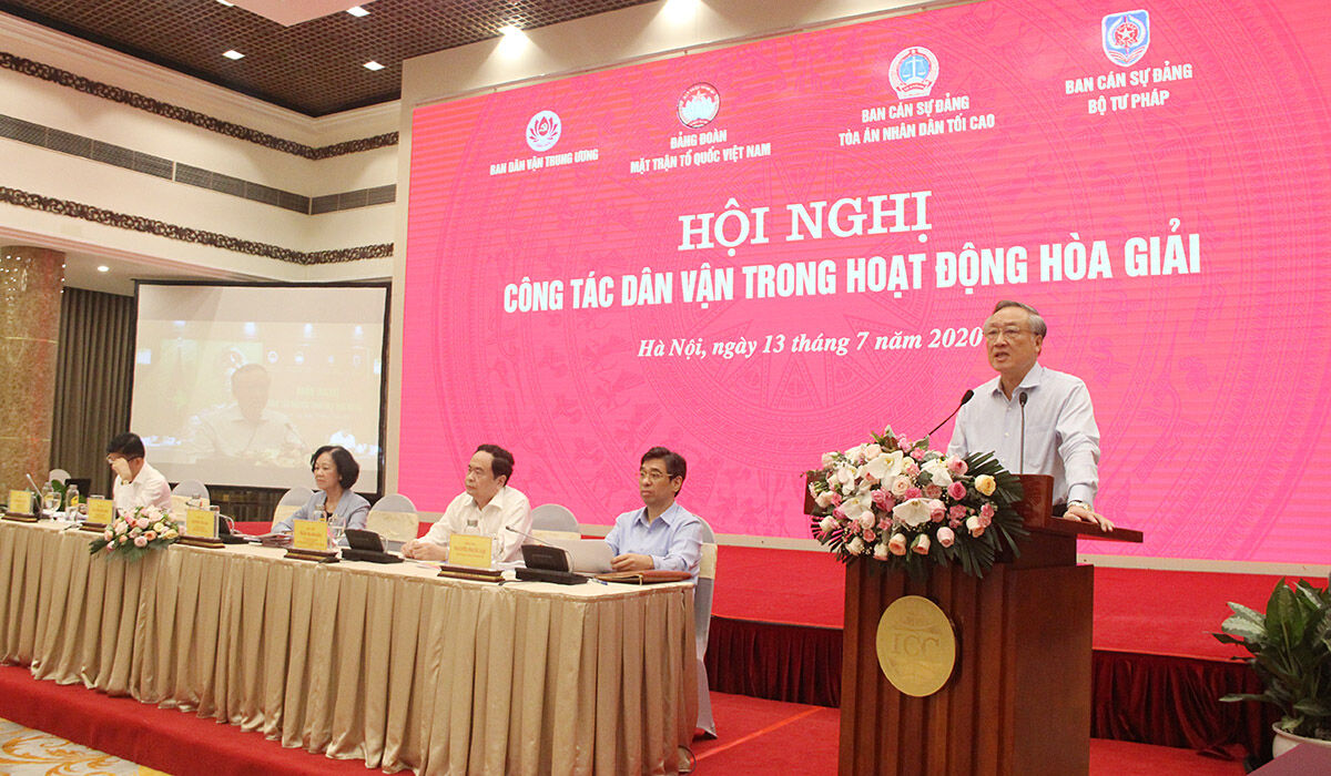 Trưởng ban Dân vận Trung ương Trương Thị Mai cũng cho biết, đến nay, với Luật Hòa giải ở cơ sở, Luật Hòa giải, đối thoại tại Tòa án và hoạt động của hòa giải viên lao động, trọng tài lao động trong quy định của Bộ luật Lao động góp phần giải quyết tranh chấp lao động, cùng với các cơ chế hòa giải, đối thoại được quy định trong Bộ luật Tố tụng dân sự, Luật Tố tụng hành chính, Luật Đất đai, Luật Khiếu nại, Luật Bảo vệ quyền lợi người tiêu dùng... hoạt động hòa giải đã bao quát hầu hết các lĩnh vực đời sống xã hội.