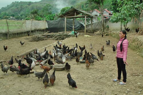 Mô hình chăn nuôi gà thả vườn của chị Sầm Thị Hoàn (Ảnh: thiduakhenthuongvn.org.vn)