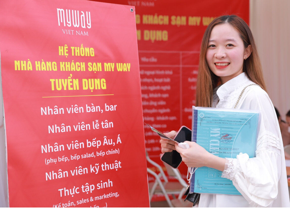 Tại đây, sinh viên có cơ hội tiếp xúc trực tiếp với nhà tuyển dụng, nâng cao bản lĩnh nghề nghiệp, học hỏi kinh nghiệm thực chiến, tìm hiểu và chinh phục các doanh nghiệp với đa dạng ngành nghề khác nhau như: Khách sạn, nhà hàng, Thương mại, Kế toán, Xuất khẩu lao động, Du lịch – nghỉ dưỡng, bất động sản, giáo dực... đồng thời, giúp các nhà tuyển dụng tiếp cận với nguồn nhân lực trẻ đã và đang được đào tạo có chất lượng tại Trường cao đẳng Thương mại và Du lịch Hà Nội.