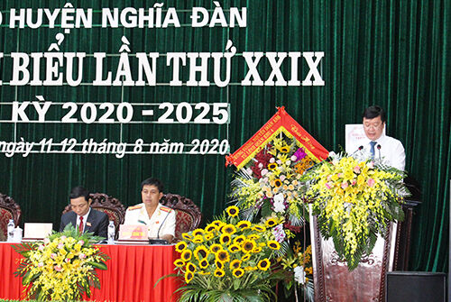 VNHN - Sáng 12/8, Đảng bộ huyện Nghĩa Đàn khai mạc Đại hội đại biểu lần thứ XXIX, nhiệm kỳ 2020 - 2025. Đại hội đã bầu 36 đồng chí vào Ban Chấp hành Đảng bộ huyện Nghĩa Đàn khóa XXIX, nhiệm kỳ 2020 - 2025