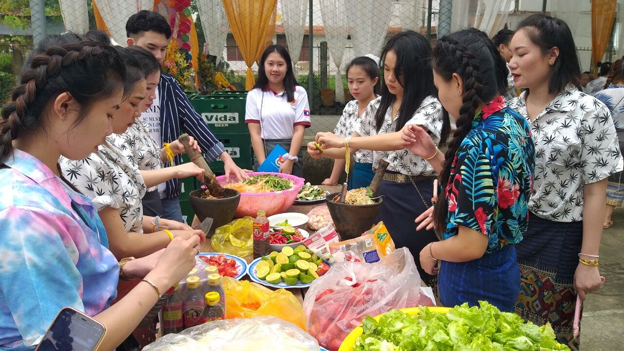Các sinh viên Lào tự chế biến ẩm thực truyền thống