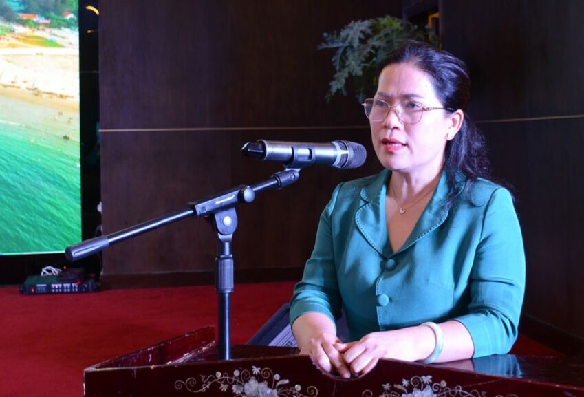 Đồng chí Hồ Thị Ngân - Phó Chủ tịch Thường trực Hội Nhà báo Nghệ An đã thông qua tóm tắt Thể lệ Cuộc thi báo chí viết về du lịch Cửa Lò năm 2021