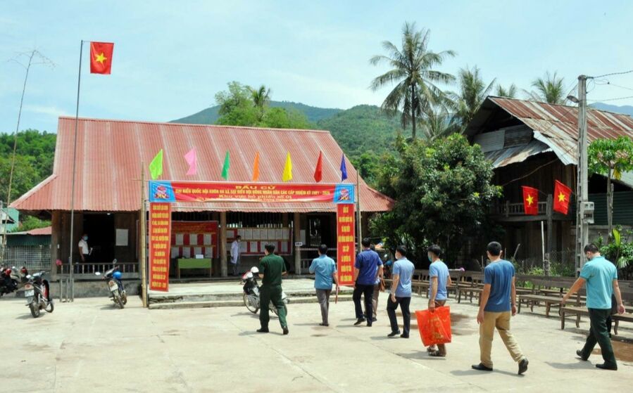 Nhà Văn hóa bản Nhôn Mai, xã Nhôn Mai (Tương Dương) được trang trí sẵng sàng cho ngày bầu cử