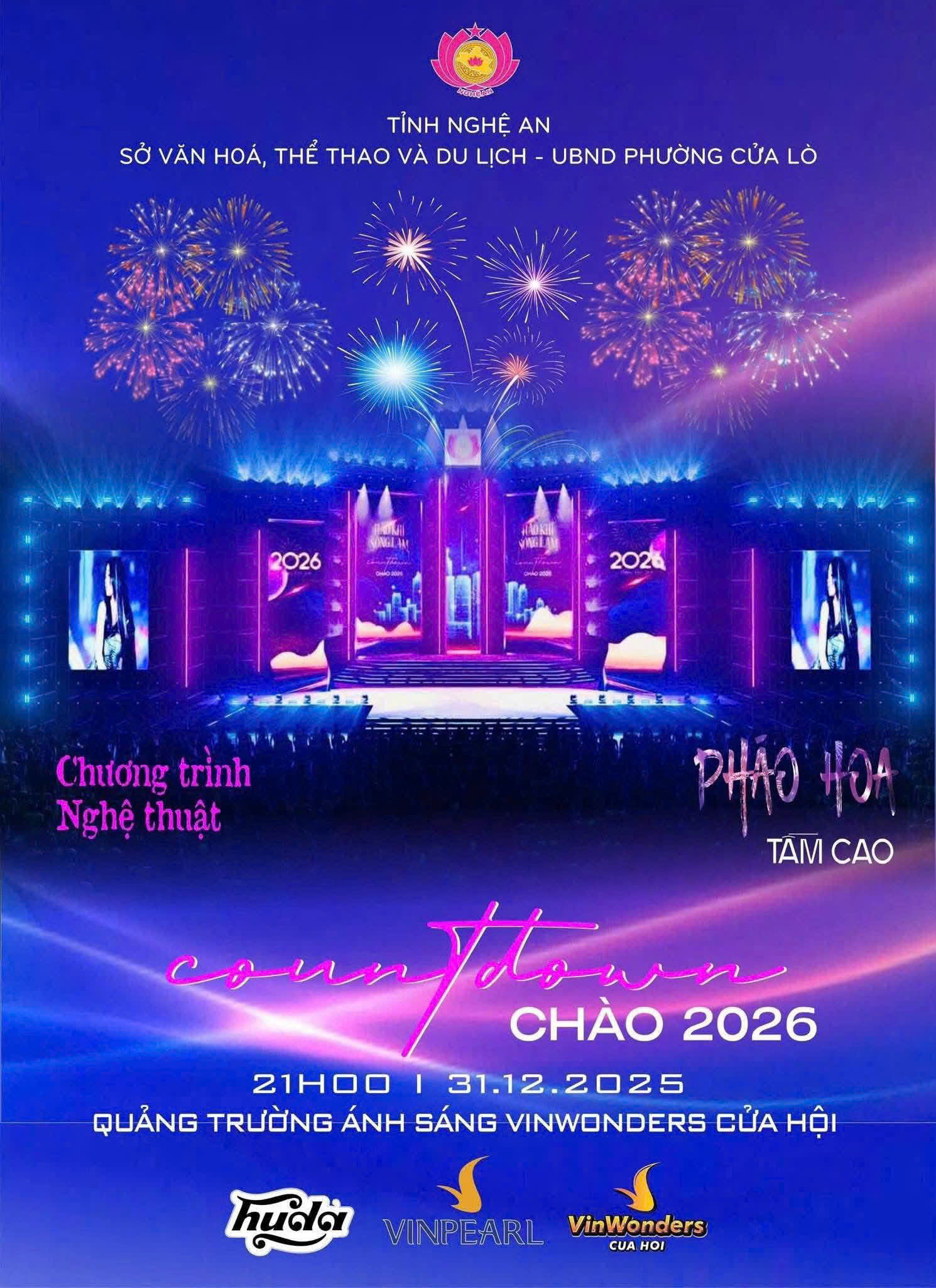 Sau khi nghỉ ngơi, check-in và tận hưởng không gian xanh mát tại Hòn Mát, nhiều du khách tiếp tục hành trình xuôi về Cửa Lò để hòa mình vào không khí sôi động của sự kiện Countdown 2026. Đêm Countdown 2026 tại biển Cửa Lò (Nghệ An) sẽ mang đến đại tiệc âm nhạc và pháo hoa tầm cao, góp phần quảng bá hình ảnh trung tâm du lịch biển Bắc Trung Bộ trong thời khắc chuyển giao năm mới.