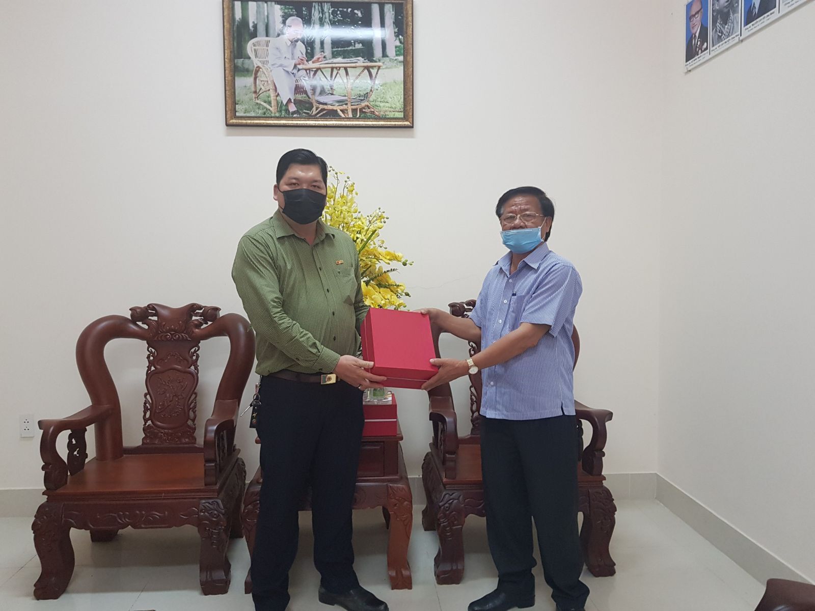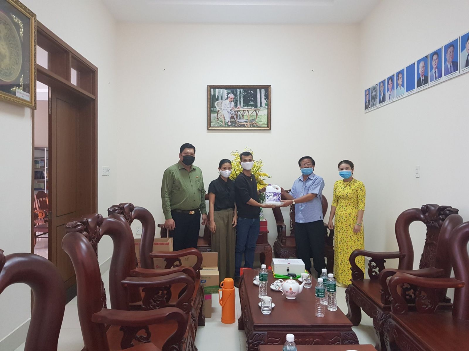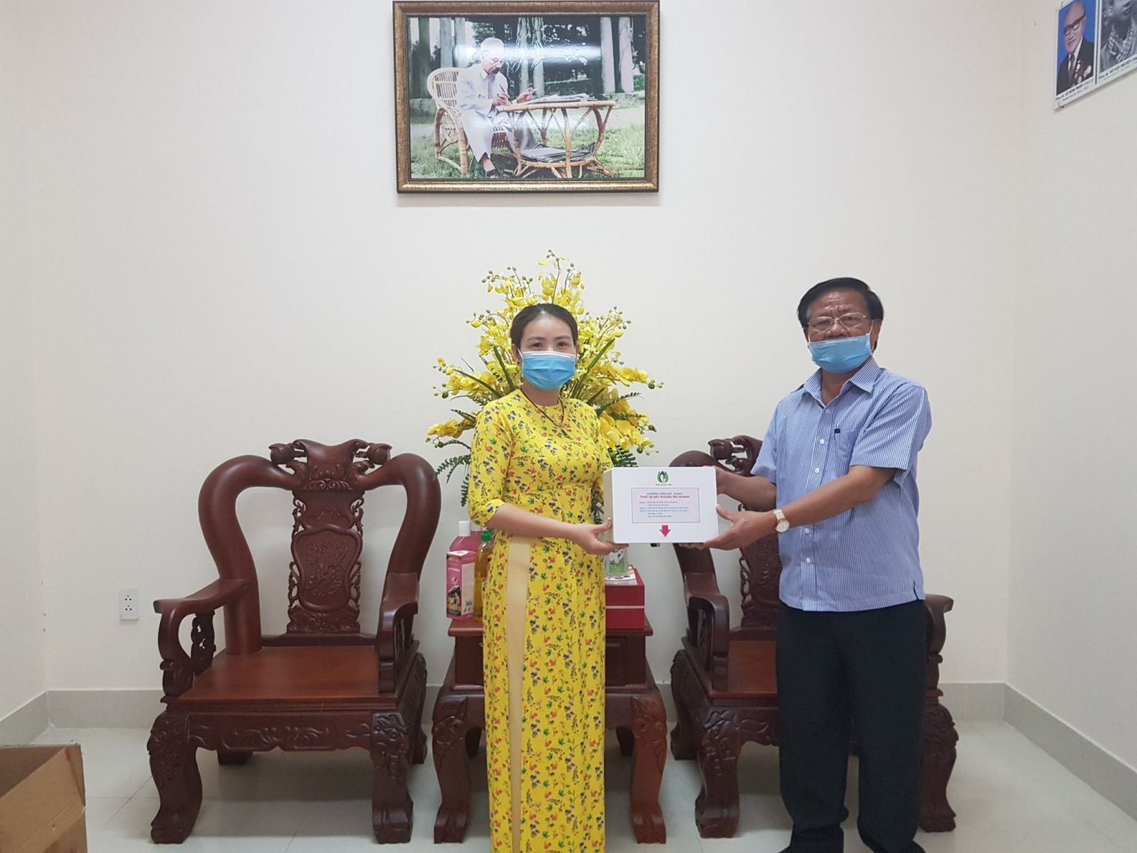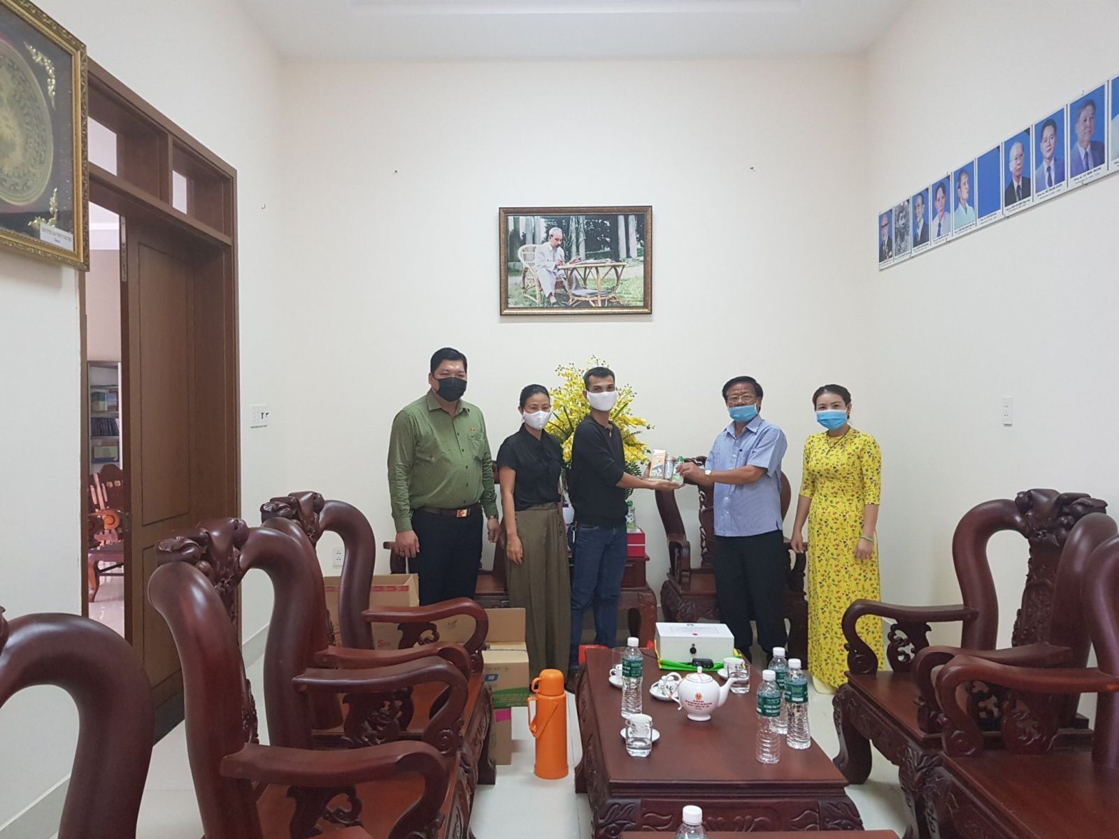 Tạp chí Việt Nam Hội Nhập cùng đại diện Công ty TNHH XNK Kim Dư Việt Nam trao tặng các sản phẩm gel chống khuẩn và một số sản phẩm vệ sinh văn phòng đến ông Nguyễn Minh Triều - Trưởng Ban Tuyên giáo Tỉnh ủy Tây Ninh (Thứ 2, bên phải).