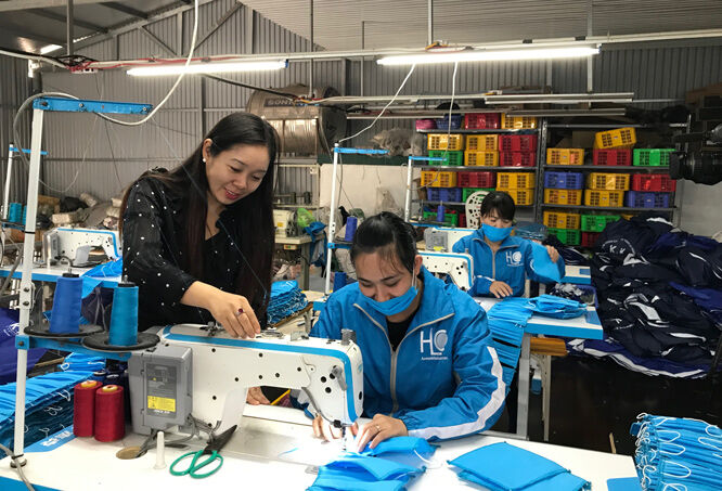 “Ở khu vực gia đình tôi sinh sống có tới 20 cửa hàng thuốc, nhưng có thời điểm không cửa hàng nào còn khẩu trang y tế để bán. Trong khi đó không ít cửa hàng, đơn vị tăng giá khẩu trang y tế lên gấp nhiều lần làm cho nhiều người, nhất là các bậc phụ huynh vất vả đi mua khẩu trang cho con em mình. Sẵn có xưởng may, tôi bàn với gia đình chuyển từ sản xuất áo mưa sang may khẩu trang vải để phát miễn phí cho học sinh trên địa bàn cùng người thân, bạn bè sử dụng phòng trừ dịch bệnh”, chị Lê Thị Thắm chia sẻ. Nghĩ là làm, mặc dù còn nhiều khó khăn, nhất là xưởng sản xuất vẫn phải đi thuê, song chị Thắm đã chi hơn 200 triệu đồng để mua sắm thiết bị, nguyên liệu…, thực hiện ý tưởng này.