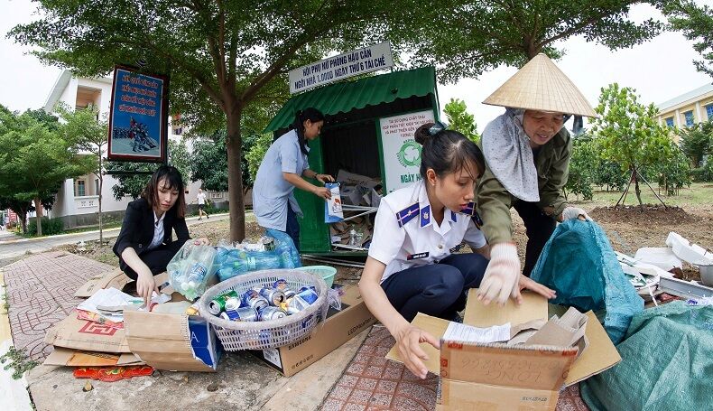 Ở các đơn vị không có hội viên phụ nữ, cán bộ Hội đến trao đổi trực tiếp với chỉ huy đơn vị và cán bộ, chiến sĩ, đề nghị phối hợp phân loại và thu gom, thứ 6 hàng tuần Hội bố trí hội viên đến lấy. Trong trường hợp phát sinh nhiều chất thải, các đơn vị liên hệ trực tiếp với cán bộ hội (bằng điện thoại) thông báo và Hội sẽ sắp xếp, cử hội viên đến cùng thu gom.