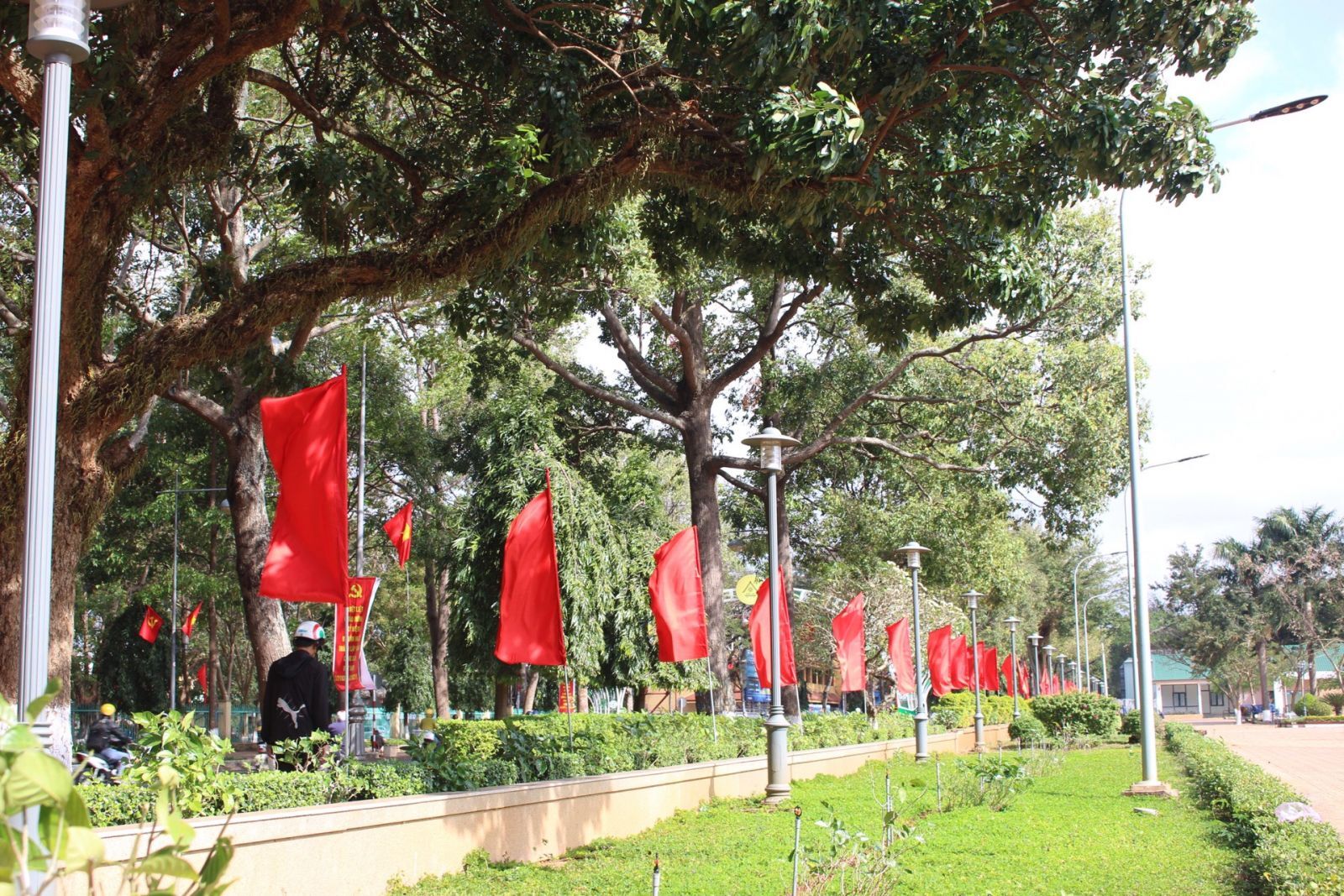 Phong trào treo cờ chào mừng Đại hội cũng được hưởng ứng mạnh mẽ. (Ảnh: Đinh Hằng)