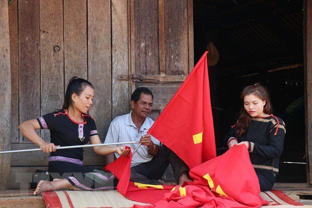 Nhân dân các dân tộc anh em Tây Nguyên, tưng bừng, hân hoan chào mừng Đại hội lần thứ XIII của Đảng. (Ảnh: Tuấn Anh)