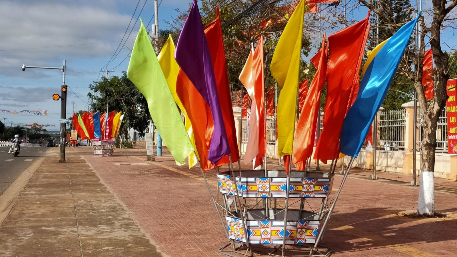 Trước ngày diễn ra Đại hội đại biểu toàn quốc lần thứ XIII của Đảng, đường phố Kon Tum được trang hoàng rực rỡ cờ, hoa. ( Ảnh: Huỳnh Yên)