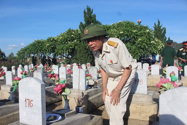 Anh hùng Vi Đức Cường bồi hồi nhớ đồng đội của mình tại nghĩa trang Liệt sĩ Việt Lào