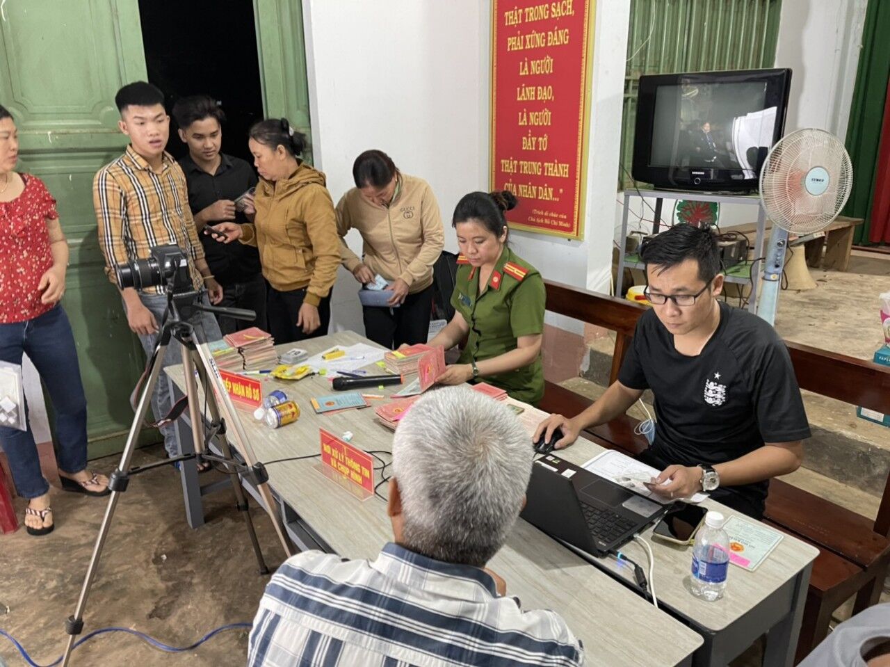 Tương tự, từ nhiều tháng nay, khi trời chưa sáng, Trung tá Nguyễn Thị Hoa – Đội trưởng Đội Cảnh sát Quản lý hành chính về trật tự xã hội Công an huyện Đắk Mil; Trung tá Nguyễn Thị Luyến – Đội trưởng Đội Cảnh sát Quản lý hành chính về trật tự xã hội Công an huyện Đắk R’lấp; Đại úy Phạm Mai Hương – Phó Đội trưởng Đội Cảnh sát Quản lý hành chính về trật tự xã hội Công an thành phố Gia Nghĩa, Thiếu tá Phan Thị Như Thảo, Phó trưởng Phòng Cảnh sát quản lý hành chính về trật tự xã hội Công an tỉnh Đắk Nông ... đã phải dậy từ rất sớm chuẩn bị mọi thứ cho con đi học rồi chuẩn bị tài liệu, nhằm kịp thời đến địa điểm cấp CCCD lưu động và về nhà lúc đã đêm tối, thậm chí có hôm đến tận sáng ngày hôm sau. Bởi chồng của các chị cũng công tác trong ngành Công an, có đồng chí chồng công tác ở xa nhà, mọi công việc trong gia đình đều do người vợ một mình thu xếp từ việc chăm sóc, đưa đón, nuôi dạy các con đi học và để bảo đảm hoàn thành tốt nhiệm vụ được giao, với vai trò là lãnh đạo, chỉ huy các chị đã phải chịu thương, chịu khó thu xếp công việc gia đình chu toàn, khoa học để cùng với các đồng chí trong đơn vị đến tận địa bàn cơ sở, vùng sâu, vùng xa, vùng biên giới cấp CCCD nhằm tạo điều kiện cho nhân dân giảm bớt thời gian đi lại và chờ đợi.