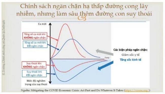 Tuy nhiên, khi các quốc gia thực hiện chiến lược ngăn chặn dịch bệnh, một mặt giúp giảm tình trạng lây nhiễm, nhưng đồng thời khiến kinh tế suy giảm trầm trọng hơn khi các hoạt động sản xuất, kinh doanh và chuỗi cung ứng, phân phối bị ngừng trệ do các biện pháp ngăn chặn, phong tỏa. Suy thoái kinh tế là cái giá không thể tránh khỏi khi chống dịch.