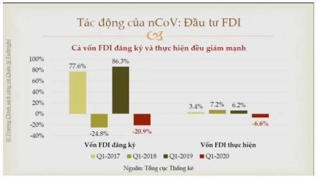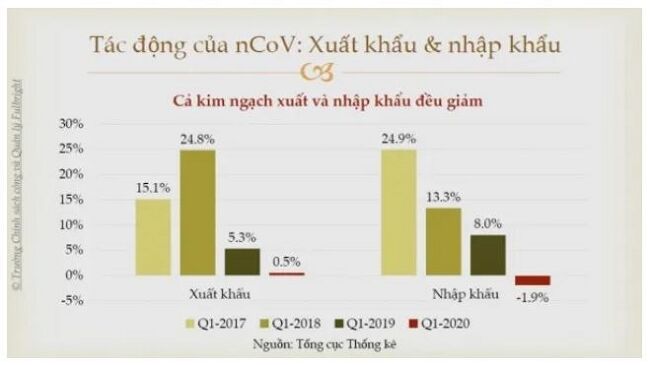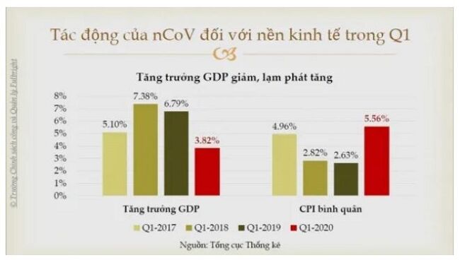 Tác động nghiêm trọng của Covid-19 được phản ánh rõ nét trong số liệu thống kê quý 1. Theo đó, tăng trưởng kinh tế Việt Nam đạt 3,82%, sụt giảm gần một nửa so với cùng kỳ năm ngoái. Cả sản xuất công nghiệp và bán lẻ tiêu dùng đều giảm mạnh với chỉ số sản xuất công nghiệp chỉ bằng 50% so với năm 2018.