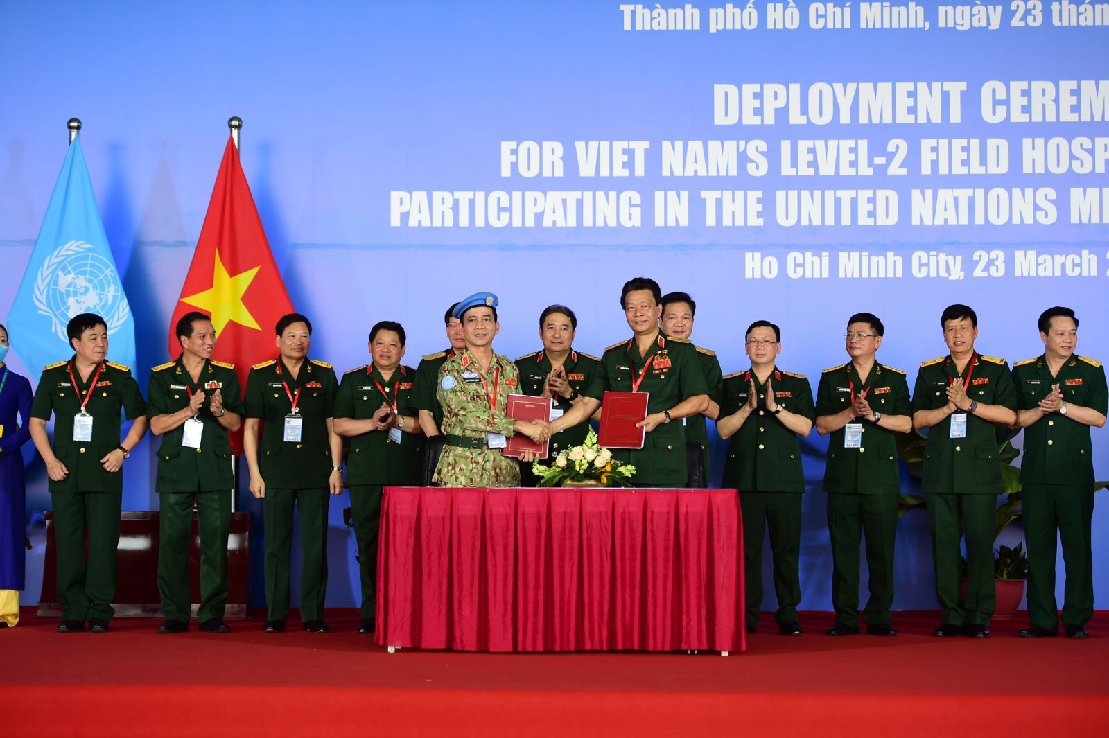 Chiều 23/3, Bộ Quốc phòng đã tổ chức lễ xuất quân cho các cán bộ chiến sĩ Bệnh viện dã chiến cấp 2 (số 3), lên đường làm nhiệm vụ gìn giữ hòa bình Liên Hiệp Quốc tại Cộng hòa Nam Sudan.
