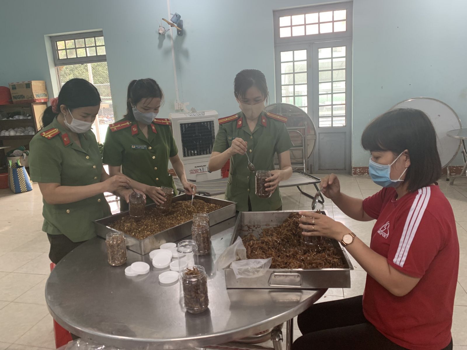 Hội Phụ nữ Công an huyện Cư Jút làm các loại thực phẩm gửi tặng người dân vùng dịch Thành phố Hồ Chí Minh.