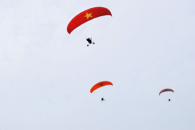 Bên cạnh đó, những màn trình diễn dù lượn mang đến trải nghiệm đầy hứng khởi giữa trời xuân. Những cánh dù lướt qua bầu trời trong tiếng reo hò khiến buổi hẹn Valentine trở thành một cuộc dạo chơi ngoài trời đầy hứng khởi.
