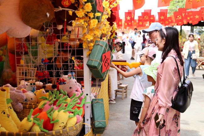 Tại Green Paradise Tết Fest, các con chị háo hức khi được tham gia workshop thủ công làm vòng treo cửa, trang trí bao lì xì Tết. Buổi tối, cả nhà quây quầno bên gian hàng ẩm thực rực ánh đèn, thưởng thức đặc sản ba miền trong không khí nhộn nhịp nhưng vẫn đủ thư thả để trò chuyện.