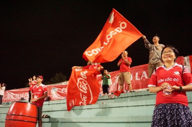 Cơn lốc đỏ luôn tràn qua sân vận động mỗi khi đội bóng và những người hâm mộ Thể Công xuất hiện