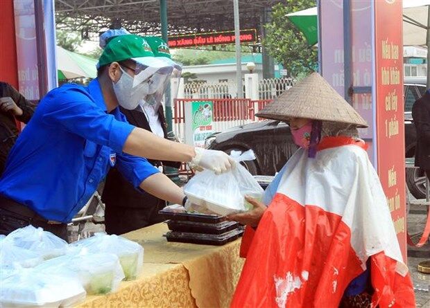 Suất ăn miễn phí làm ấm lòng người lao động nghèo giữa mùa dịch. Ảnh: vov.vn