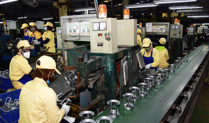 Cộng đồng doanh nghiệp đã và đang nỗ lực thực hiện đồng bộ nhiều giải pháp để hoàn thành chỉ tiêu đặt ra. Trong ảnh: Dây chuyền sản xuất đồ gia dụng tại Công ty cổ phần Kim khí Thăng Long. Ảnh: hanoimoi.com.vn