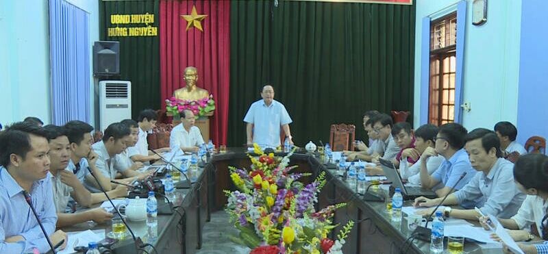 Một cuộc họp của Lãnh đạo huyện Hưng Nguyên về công tác giải phóng mặt bằng