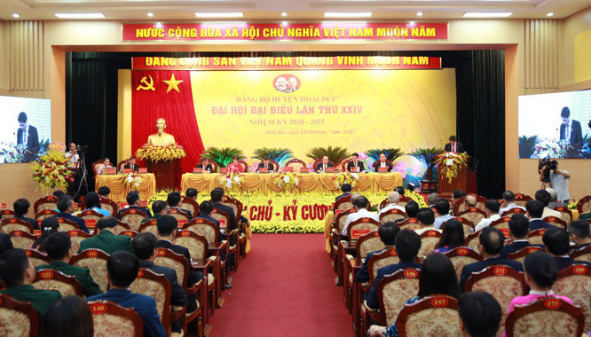 Phát biểu khai mạc đại hội, Bí thư Huyện ủy Hoài Đức nhiệm kỳ 2015-2020 Nguyễn Quang Đức khẳng định, Đại hội đại biểu Đảng bộ huyện Hoài Đức khóa XXIV, nhiệm kỳ 2020-2025 có nhiệm vụ tổng kết, đánh giá kết quả thực hiện Nghị quyết Đại hội Đảng bộ huyện khóa XXIII, nhiệm kỳ 2015-2020; quyết định phương hướng, mục tiêu, nhiệm vụ xây dựng huyện Hoài Đức trở thành quận giai đoạn 2020-2025 và những năm tiếp theo, tạo bước phát triển mạnh mẽ, toàn diện, bền vững về kinh tế - xã hội, bảo đảm quốc phòng, an ninh và trật tự an toàn xã hội; xây dựng Đảng và hệ thống chính trị trong sạch, vững mạnh, hiệu lực, hiệu quả.