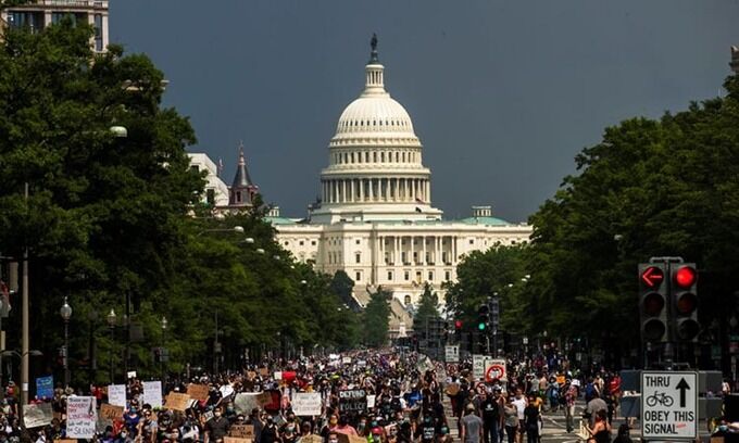 Người biểu tình tuần hành về phía Nhà Trắng hôm 6/6.