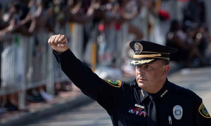 Cảnh sát trưởng thành phố Houston Art Acevedo giơ nắm tay trong lễ đưa tang George Floyd tại bang Texas hôm 9/6.