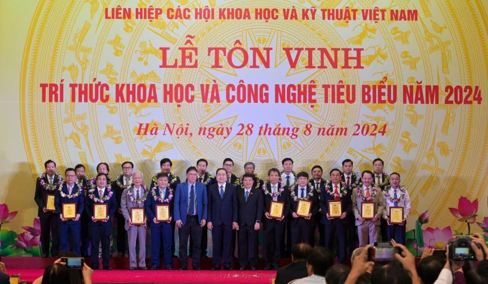 PGS.TS.BS Vũ Văn Tâm (người thứ 3 hàng đầu, từ phải sang) vinh dự được Liên hiệp các Hội Khoa học và Kỹ thuật Việt Nam vinh danh là Trí thức Khoa học và Công nghệ tiêu biểu năm 2024.