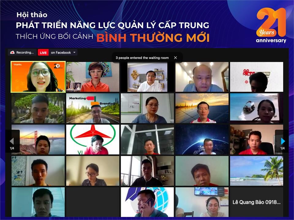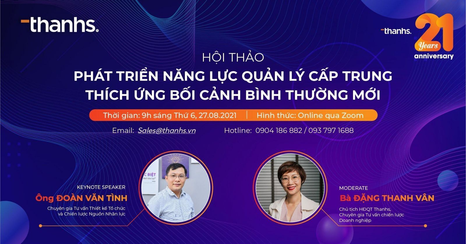 Hội thảo online “Phát triển năng lực quản lý cấp trung thích ứng bối cảnh bình thường mới” do Công ty CP Thương hiệu và Quản trị Thanhs tổ chức vào 27/8/2021