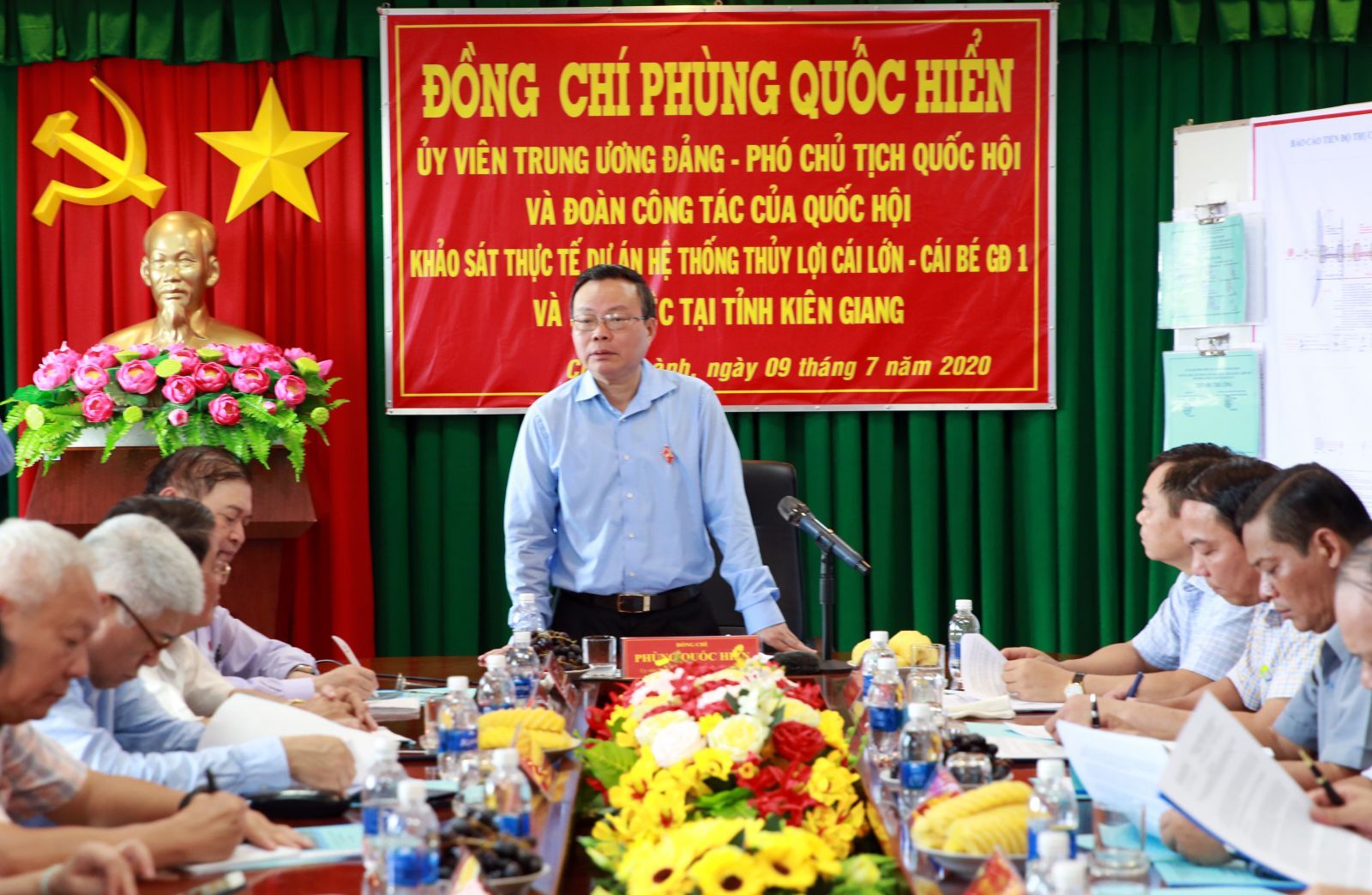 Hiện nay, với tình hình xâm mặn đang diễn ra hết sức phức tạp, Phó Chủ tịch Quốc hội khẳng định, Kiên Giang sẽ còn gặp nhiều khó khăn về an ninh nguồn nước khi biến đổi khí hậu, nước biển dâng dẫn đến thời tiết ngày càng có nhiều biểu hiện cực đoan, gây bất lợi cho sản xuất, đời sống và hoạt động kinh tế - xã hội.