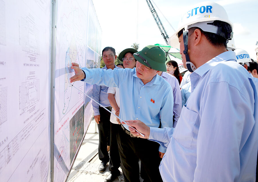Phó Chủ tịch Quốc hội Phùng Quốc Hiển (ngoài cùng bên phải) khảo sát dự án và tiến độ thi công của công trình. (Nguồn: Internet)