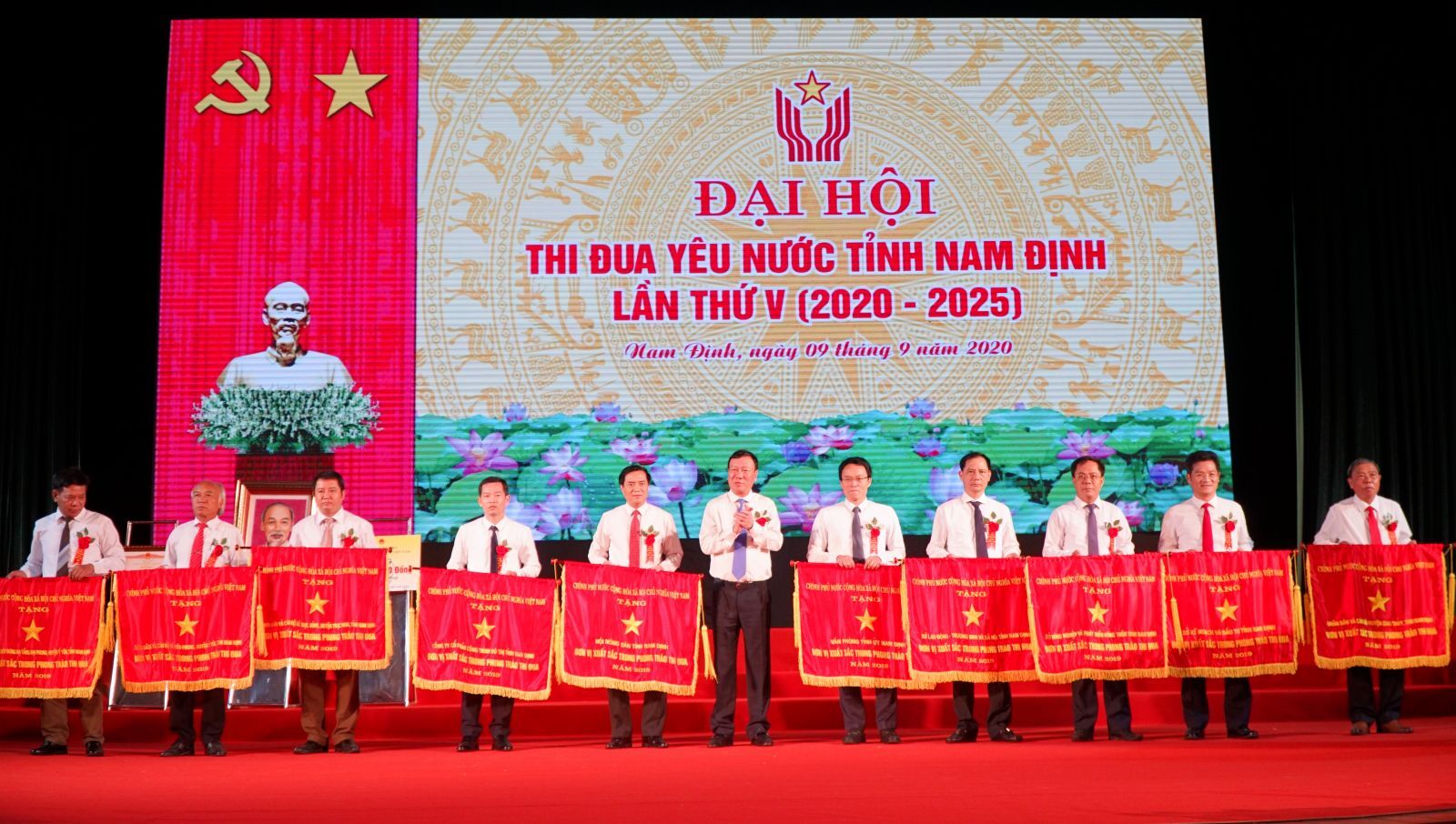 Trao tặng Cờ thi đua của Chính phủ cho 10 tập thể thuộc tỉnh Nam Định dẫn đầu phong trào thi đua yêu nước của tỉnh Nam Định năm 2019