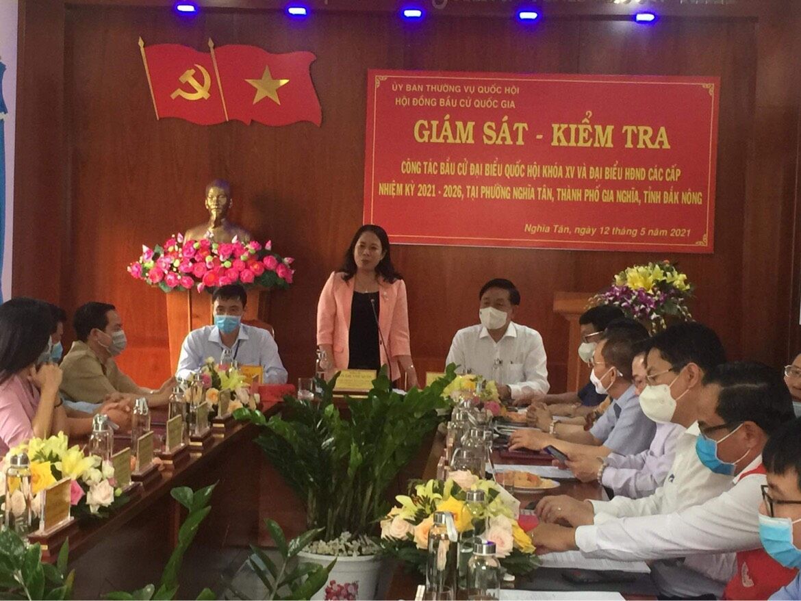 Vừa qua, Đoàn giám sát, kiểm tra công tác bầu cử của Ủy ban Thường vụ Quốc hội do đồng chí Phó Chủ tịch nước Võ Thị Ánh Xuân làm Trưởng đoàn đã tiến hành kiểm tra công tác chuẩn bị bầu cử một số địa điểm tại thành phố Gia Nghĩa (Đắk Nông).