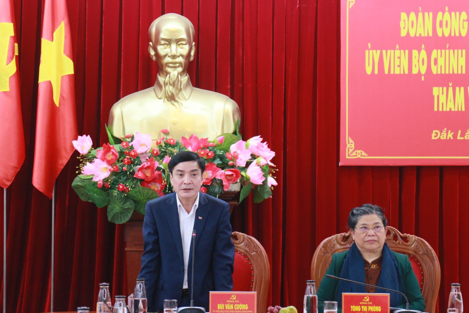 Phát biểu chỉ đạo tại buổi làm việc, Ủy viên Bộ Chính trị, Phó Chủ tịch Thường trực Quốc hội Tòng Thị Phóng đã chúc mừng, chia vui với những thành tích mà tỉnh Đắk Lắk đã gặt hái được trong thời gian qua, trong đó có sự đổi mới của Đảng bộ về nhiều mặt; tiếp tục giữ vững sự ổn định chính trị, chủ quyền biên giới... Đề nghị trong thời gian tới, tỉnh quan tâm, tập trung phát triển hơn nữa vùng dân tộc thiểu số; thực hiện chính sách dân tộc, giảm nghèo bền vững.