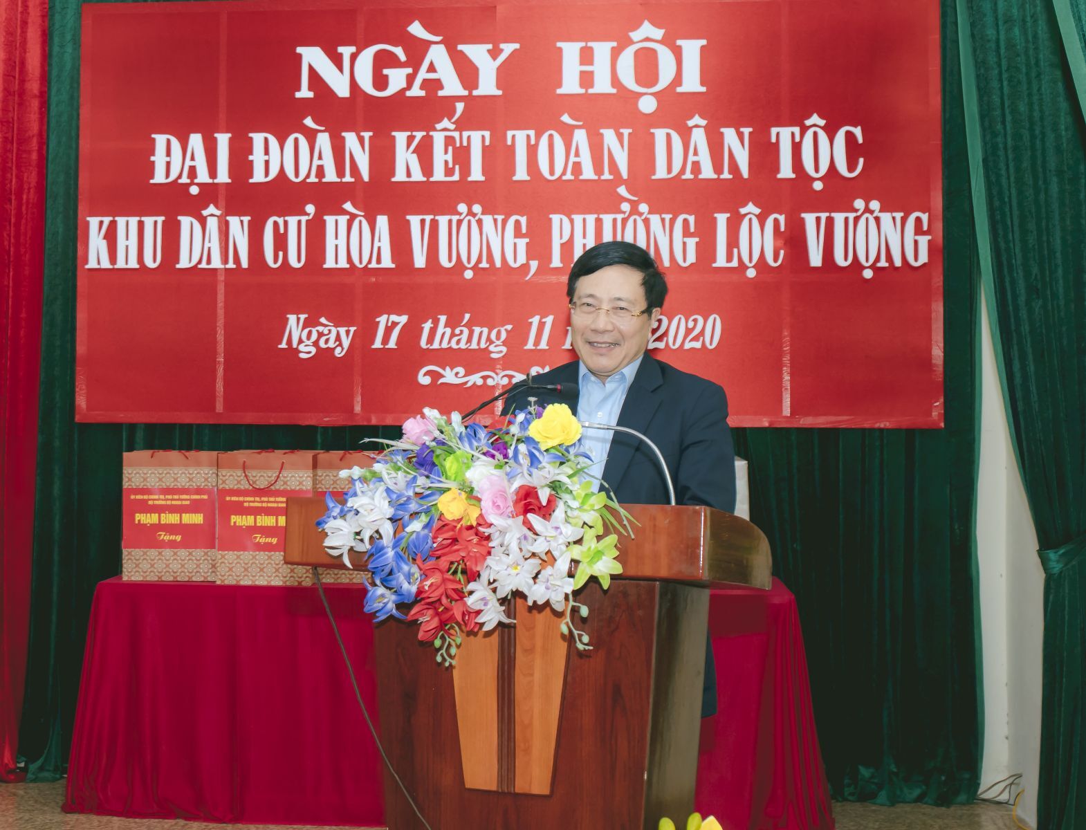 Tại ngày hội, Phó Thủ tướng Phạm Bình Minh thăm hỏi ân cần, chúc sức khỏe và động viên các tầng lớp nhân dân Khu dân cư Hòa Vượng và tỉnh Nam Định; đồng thời ghi nhận, biểu dương, đánh giá cao những kết quả nổi bật trên mọi lĩnh vực mà Khu dân cư Hòa Vượng nói riêng, tỉnh Nam Định nói chung đã đạt được. Phó Thủ tướng nhấn mạnh, ngày hội là hoạt động thiết thực nhằm phát huy sức mạnh đại đoàn kết toàn dân, góp phần thực hiện thắng lợi các nhiệm vụ phát triển kinh tế - xã hội...
