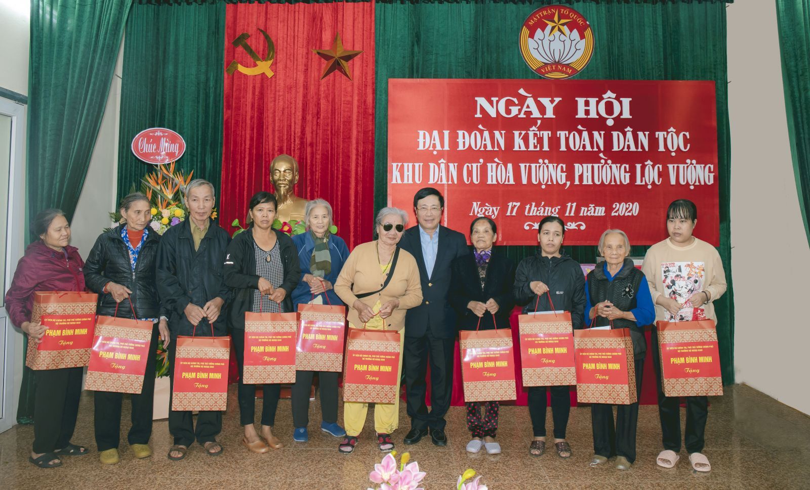 Phó Thủ tướng Phạm Bình Minh tặng quà cho các gia đình có hoàn cảnh khó khăn