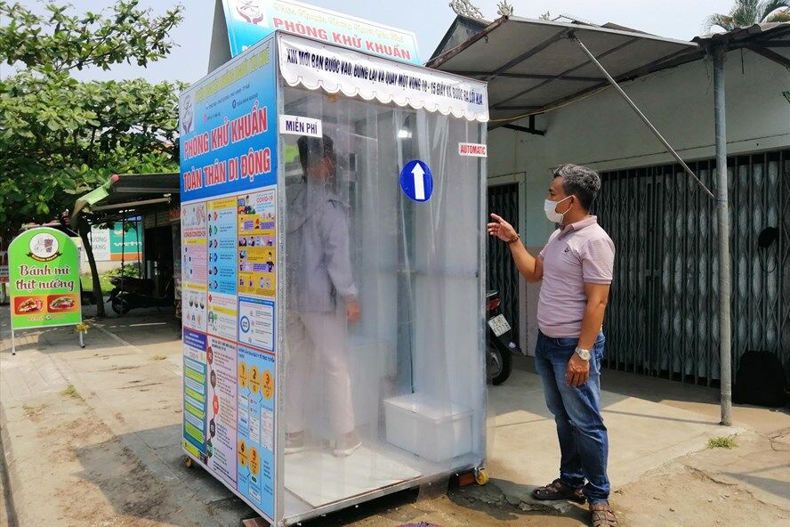 Trước tình hình dịch bệnh COVID-19 đang có những diễn biến phức tạp khiến nhiều người hoang mang, anh Trần Minh Quang (thôn Phú Khê, xã Phú Dương, huyện Phú Vang, Thừa Thiên Huế) đã chế tạo phòng khử khuẩn toàn thân di động đặt ở Quốc lộ 49 (đoạn đi qua chợ Nọ - huyện Phú Vang) phục vụ hoàn toàn miễn phí cho người dân phòng chống dịch bệnh. Theo tìm hiểu, phòng khử khuẩn được anh Quang thiết kế theo dạng module (diện tích hơn 1 mét vuông, cao 2m, rộng 1,2m, trọng lượng khoảng 30kg); có 4 bánh xe nên dễ dàng thiết kế và lắp đặt ở mọi nơi như bệnh viện, siêu thị, bến xe, ga tàu, bảo tàng, trường học.