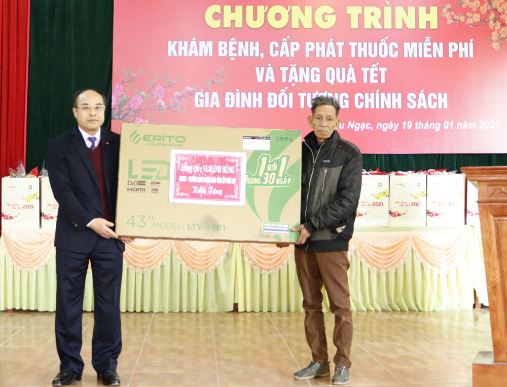 Trong chương trình trao quà Tết, cá nhân đồng chí Trưởng Ban Tuyên giáo Tỉnh ủy Vi Mạnh Hùng đã tặng một chiếc tivi cho gia đình ông Hoàng Văn Thao, khu Sài, xã Thu Ngạc, là hộ có hoàn cảnh đặc biệt khó khăn. Đồng thời, đồng chí cùng các đơn vị tài trợ đã trao tặng 250 suất quà Tết cho các gia đình chính sách, hộ có hoàn cảnh khó khăn.