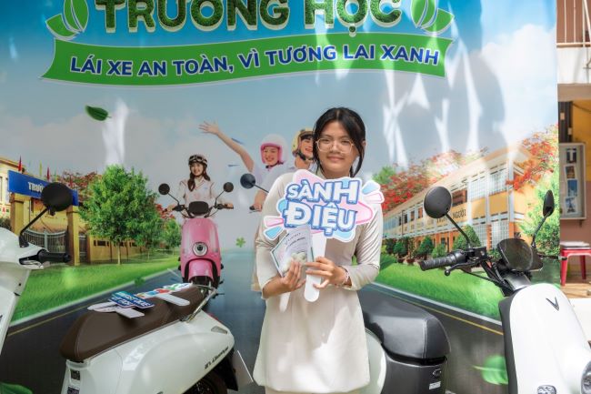 Bên cạnh đó, Kim Ngân cũng thích thú với cơ hội trải nghiệm xe máy điện VinFast. Cô bạn đánh giá mẫu VinFast Motio – xe máy điện học sinh mới ra mắt từ tháng 1/2025 - mạnh mẽ và thiết kế đẹp hơn chiếc xe điện đang sử dụng.