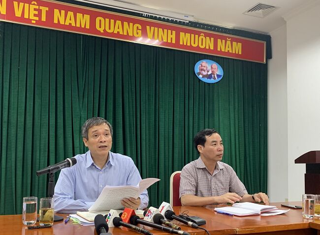 Đại diện Bộ Tài chính trao đổi tại họp báo. Ảnh: VGP.