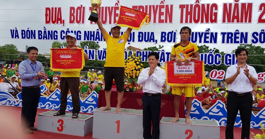 Sau gần 3 giờ đồng hồ thi đấu quyết liệt của các vận động viên, lễ hội bơi đua thuyền truyền thống trên sông Kiến Giang kết thúc tốt đẹp. Chung cuộc, đội xã Tân Thuỷ tuy lần đầu tham gia nhưng đã dành được giải Nhất thuyền đua nam bảng A, giải Nhì cho đội Phú Thủy và giải Ba thuộc đội Sơn Thủy. Ở thuyền đua nam bảng B, giải Nhất được trao cho đội Mai Hạ, giải Nhì cho đội Phan Xá và giải Ba cho đội Phú Thọ. Ở thuyền đua nữ, giải Nhất thuộc về đội An Xá, giải nhì cho đội Lộc An và giải Ba cho đội Thượng Phong.