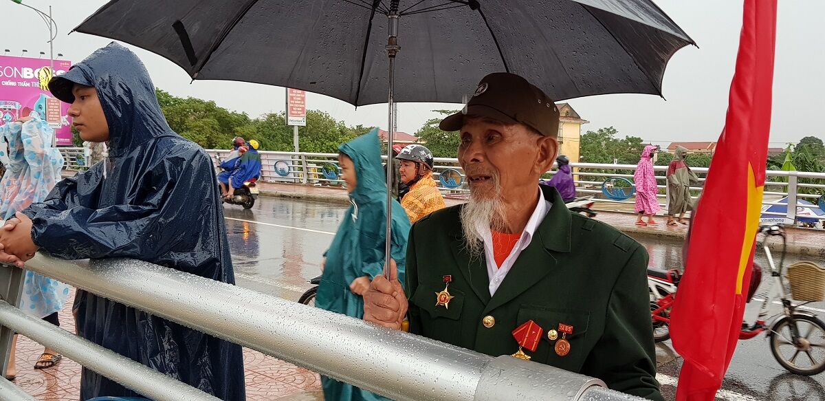 Cụ Dương Hiến ở xã Tân Thuỷ, năm nay 85 tuổi đã dậy từ 3 giờ sáng đi hàng chục cây số để về vổ vũ cho đội bơi xã nhà. Ông cho biết năm nay là năm đầu tiên Tân Thuỷ tham gia bơi đua nên bà con ai cũng háo hức, sắp xếp về bằng được để xem và cổ vũ và hy vọng đội xã mình dành giải nhất. “Mấy hôm rồi, từ khi vào bơi đua vòng loại đến hôm nay đều không ngủ được, vừa lo lắng, vừa hồi hộp chờ đến ngày chung kết. Vì xã Tân Thuỷ năm nay là lần đầu tiên tham gia nên phải quyết tâm dành thành tích cao. Nói chung là mưa to có ảnh hưởng đến công tác chuẩn bị và đi lại nhưng bà con ai cũng thấy vui sướng khi tham gia lễ hội”.